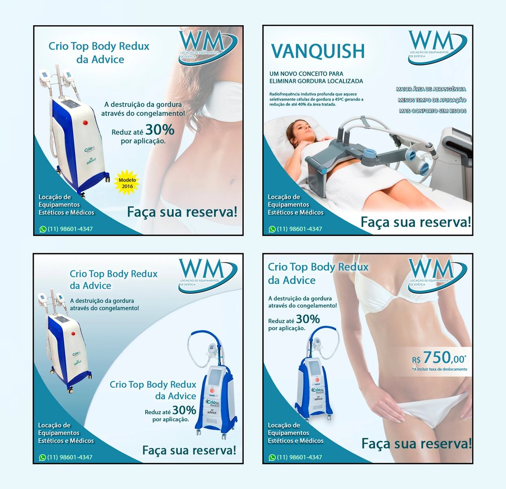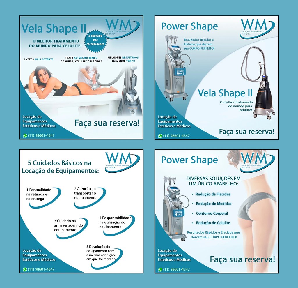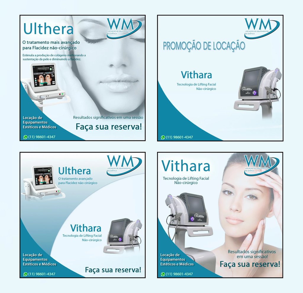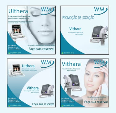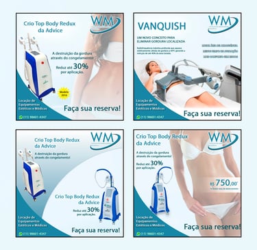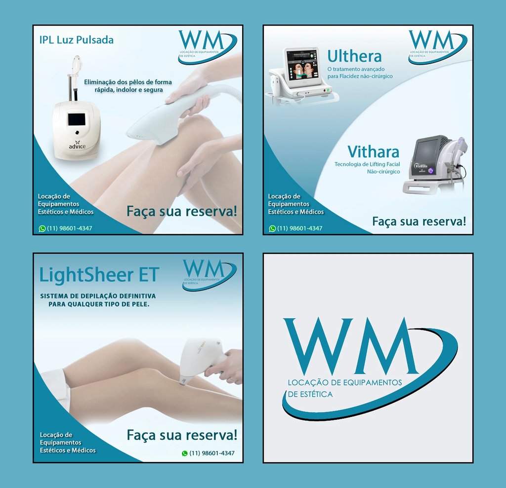 Desenvolvi a identidade visual e estrutura de comunicação da WM Locação de Equipamentos de Estética, com foco em posicionamento mais profissional e atrativo no digital.